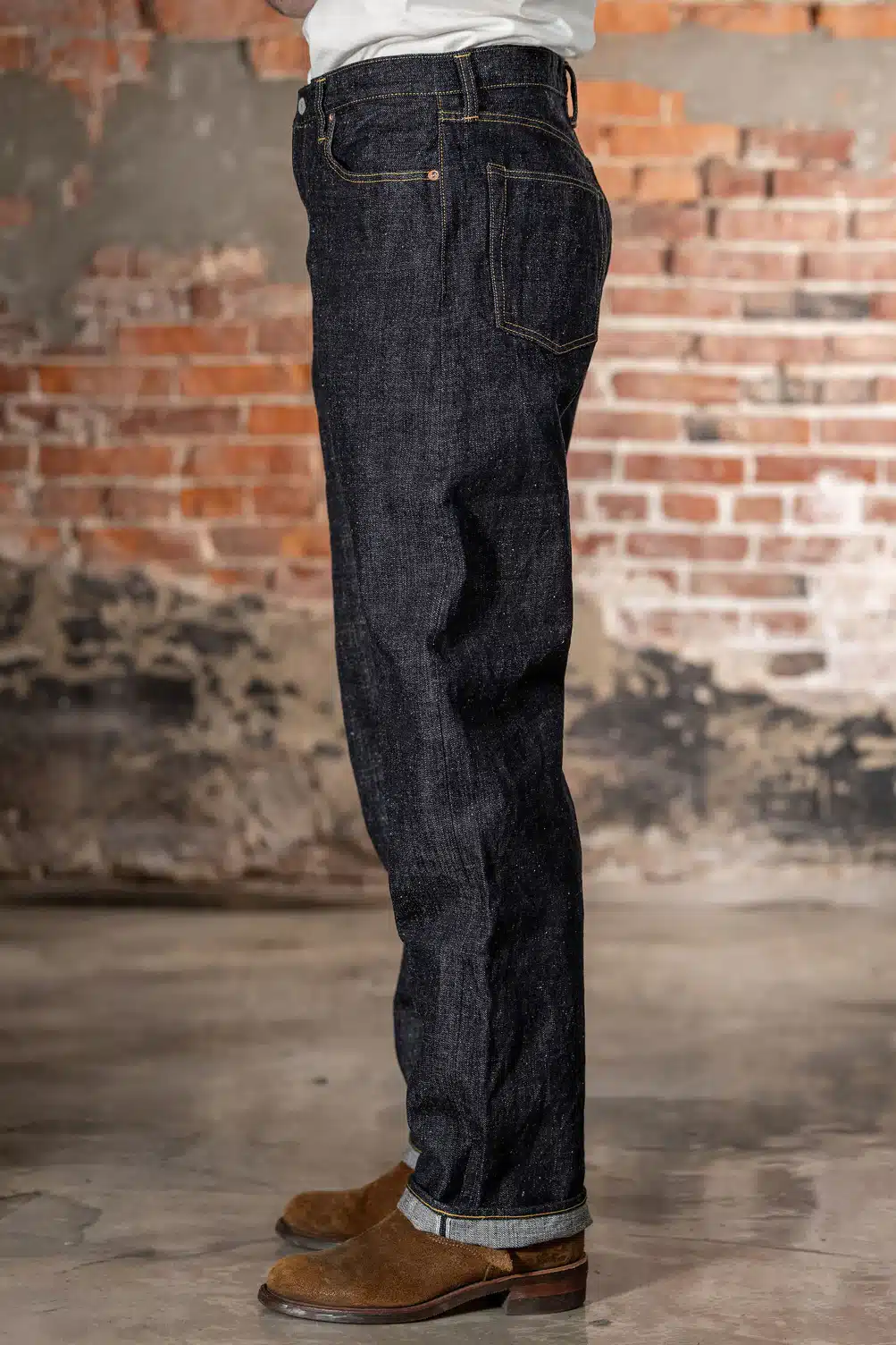 This is Omoto’s loosest fit, but it’s not exaggerated. Compared to Japan Blue’s J5, it has the same thigh and leg opening, but a slightly wider knee, which gives it a more relaxed taper and an easier drape through the leg. It’s spacious but still wearable—more classic than oversized.