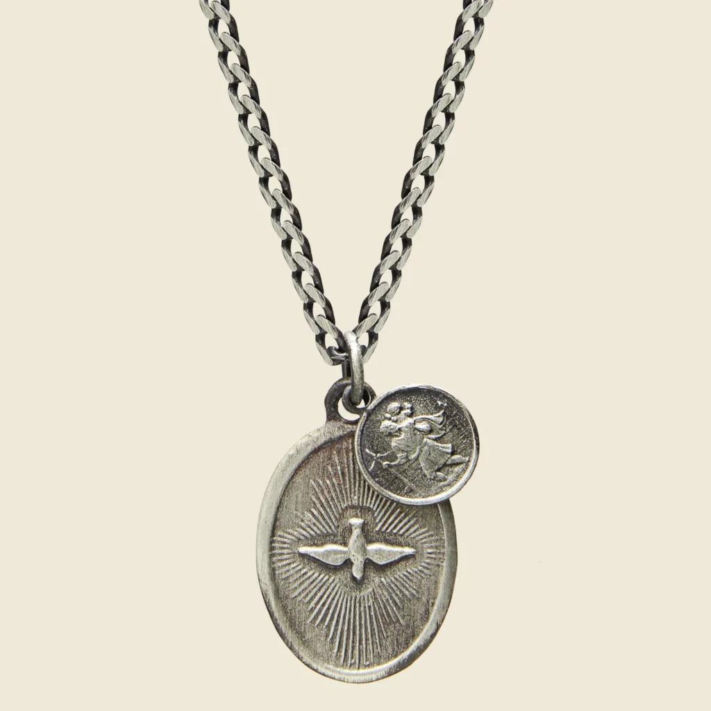 It’s hard to overstate just how much a pendant on a silver chain can transform a good look into a great one. This simple but elegant silver necklace is too beautiful to wear on the inside of the shirt. Let it fly.