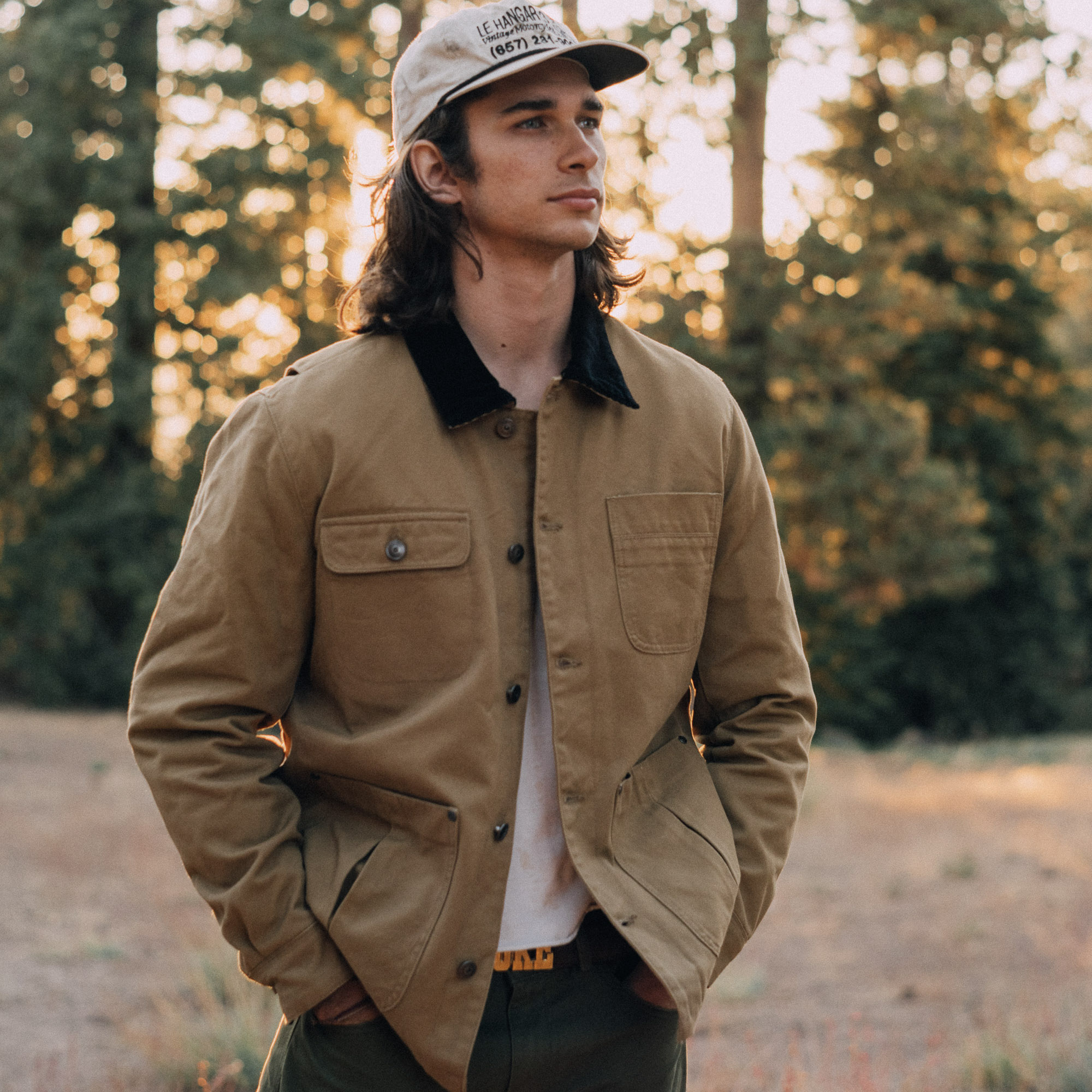 Built from 12 oz. cotton duck canvas, the Remington Jacket starts out stiff but softens the more you wear it. A flannel lining adds warmth and a flash of colour, while the corduroy collar nods to classic hunting jackets. Reinforced pockets and shank-button hardware make it properly functional, the kind of layer that looks better the harder it’s worked.